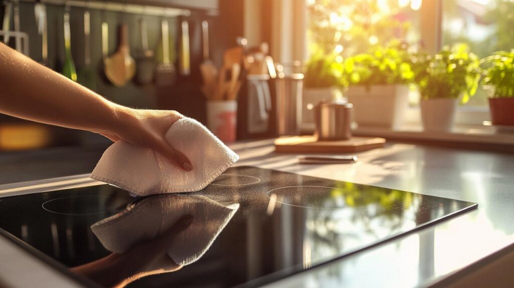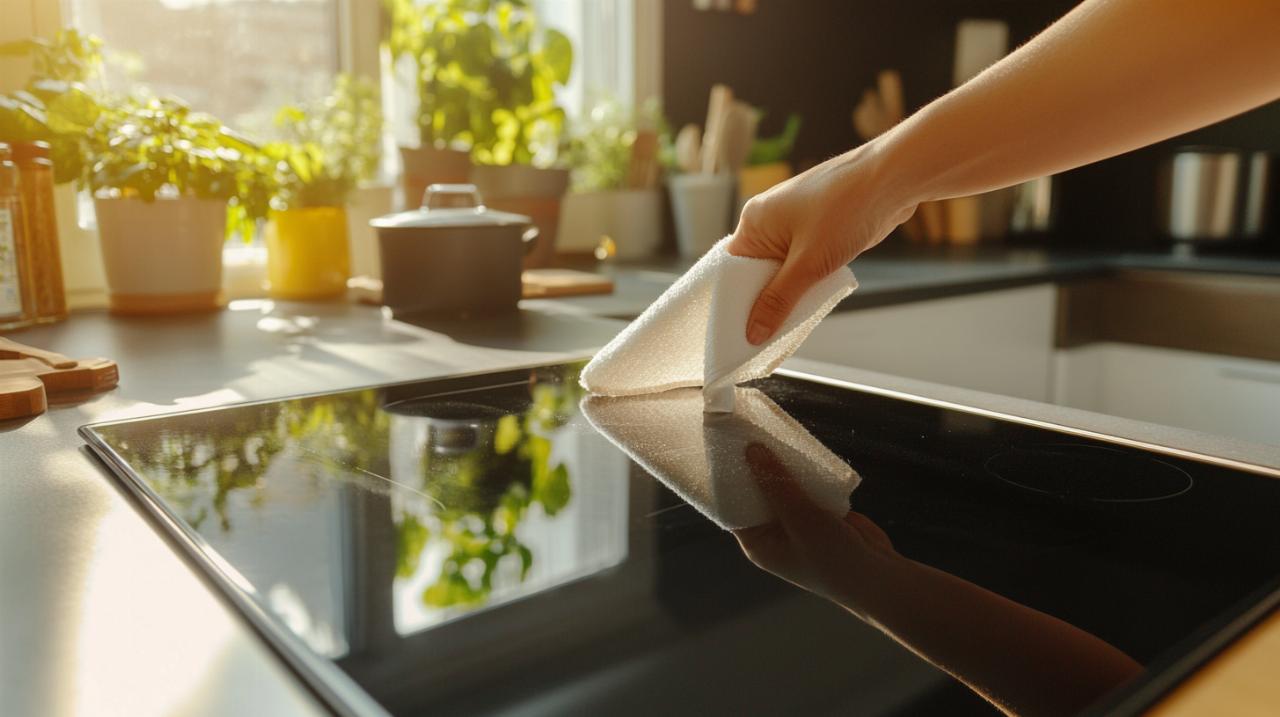 Le vinaigre blanc constitue une solution particulièrement efficace pour le nettoyage plaque induction. Ce produit naturel agit comme un puissant dégraissant qui dissout les résidus de cuisson et les traces de calcaire plaque induction. Pour l'utiliser, il suffit de vaporiser ou d'appliquer le vinaigre blanc directement sur la surface refroidie, de laisser agir quelques minutes, puis d'essuyer avec un chiffon microfibre. Cette méthode permet également d'éliminer les traces d'eau qui peuvent ternir l'éclat de votre plaque.